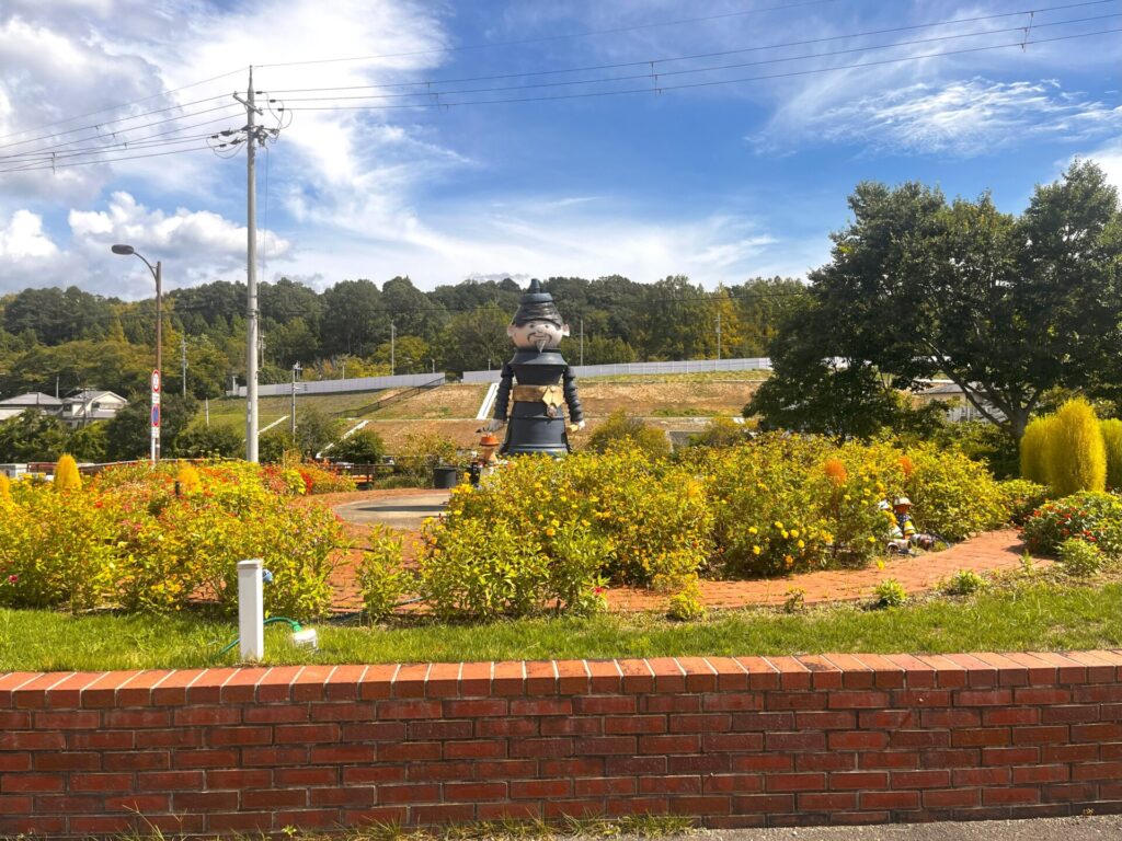 ビジターセンターの横に可愛らしい花壇と人形があります🌹🌺🌼