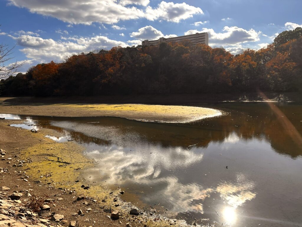 その池に沿って散歩道が続いています🍂🍃