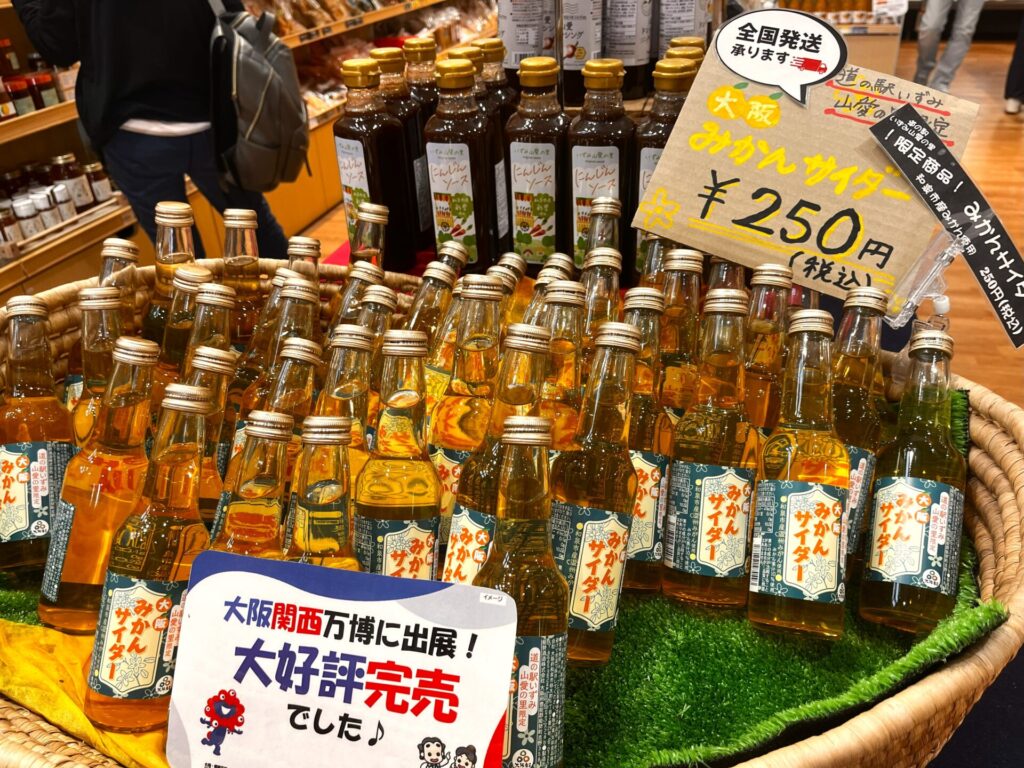 万博で大好評だったらしいみかんサイダー売ってました。夏の暑い日には格別に美味しかっただろうなぁ。