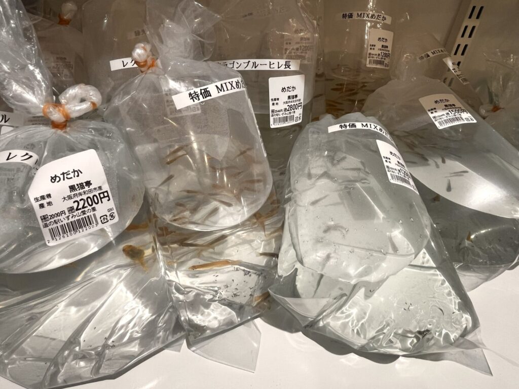 めだか売ってました。思ったより高いですね!さすが絶滅危惧種。