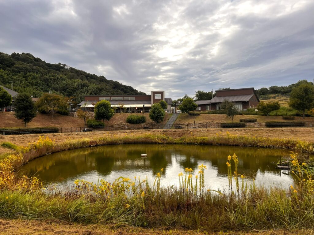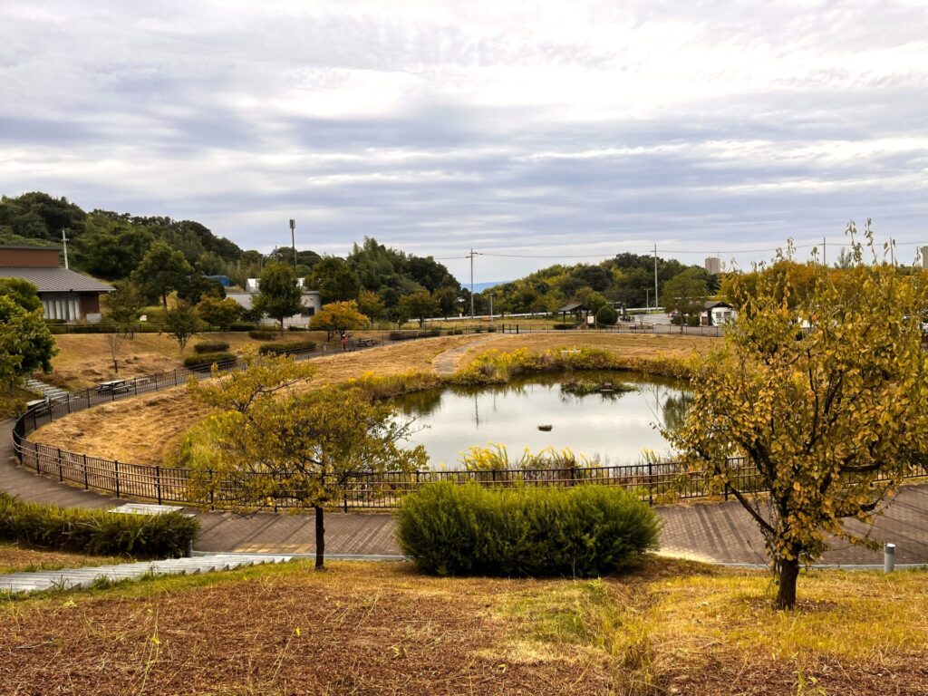 お散歩がてら下に降りて池に近づいてみました。お天気がいまいちなのが写真的に残念。
