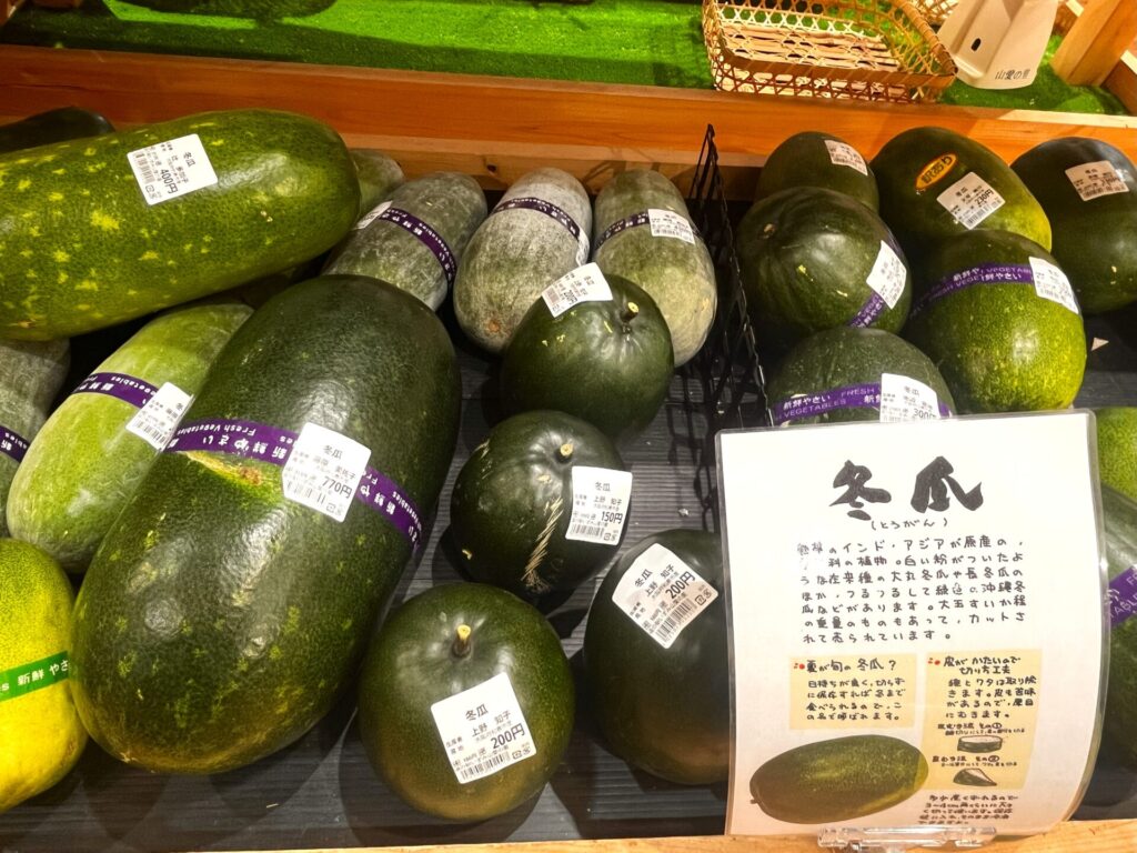 大きな冬瓜にハロウィン仕様のかぼちゃ。